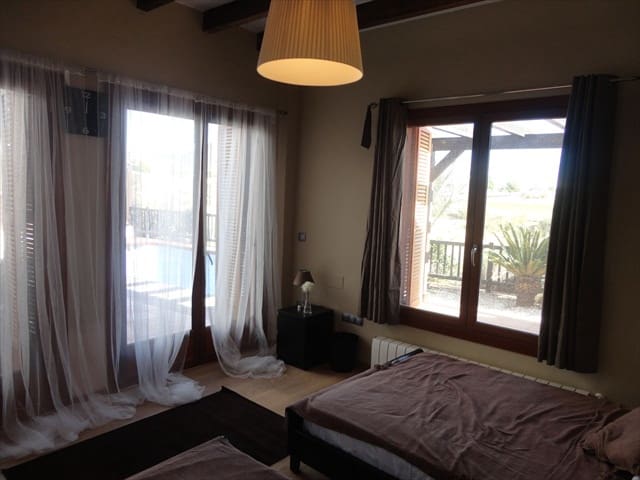 The villa has 3 double bedrooms upstairs all with large built in fitted wardrobes. Master bedroom has a super king size bed which can convert easily into two large single beds,